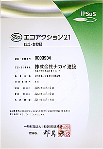 “エコアクション21”(財団法人 地球環境戦略研究機関 持続性センター)に 認証・登録されました。