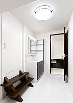 幅1.90m、奥行き4.8m(2.7坪)の洗面所とトイレ